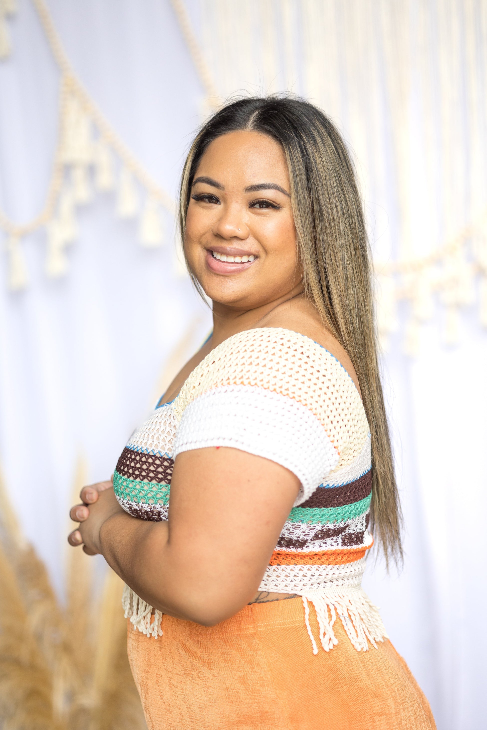 This crochet top, by Davi & Dani is a total dream! Featuring a square neckline, short sleeves and fringed hem, you will feel free to do anything in this top!