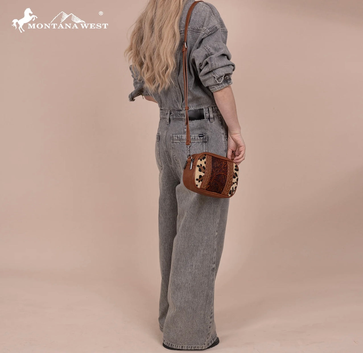Montana West Leopard Print Tooled Collection Crossbody - Brown