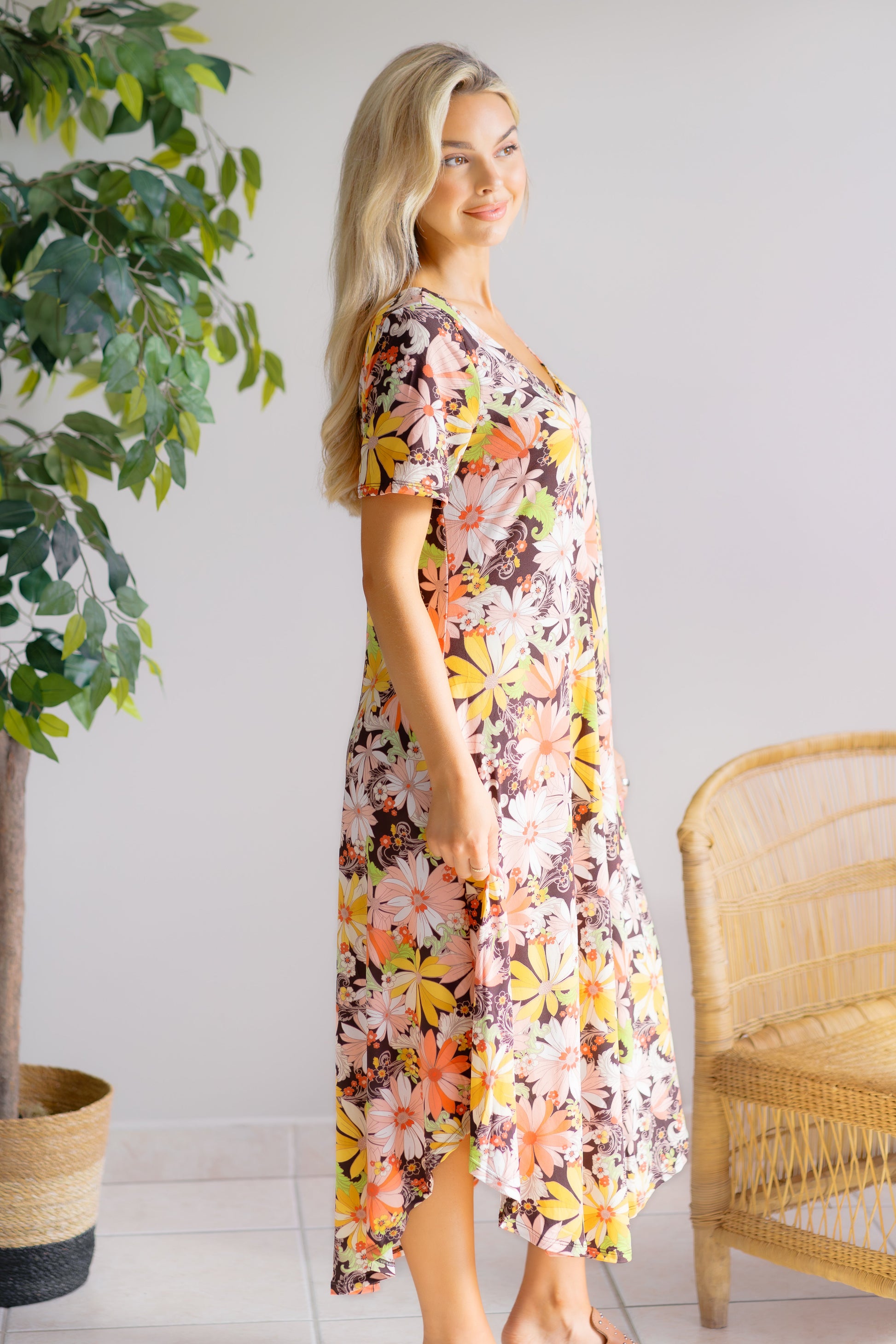 Embrace effortless elegance with the Petals in the Breeze Floral Asymmetrical Hem Midi Dress by Emerald. Its flowing silhouette and unique asymmetrical hem create a graceful movement that captures attention. The delicate floral pattern adds a touch of romance, making it perfect for both daytime outings and special occasions. Designed to flatter every figure, this dress combines comfort with style, ensuring you feel confident and radiant wherever you go. Elevate your wardrobe with a piece that celebrates femininity and charm.