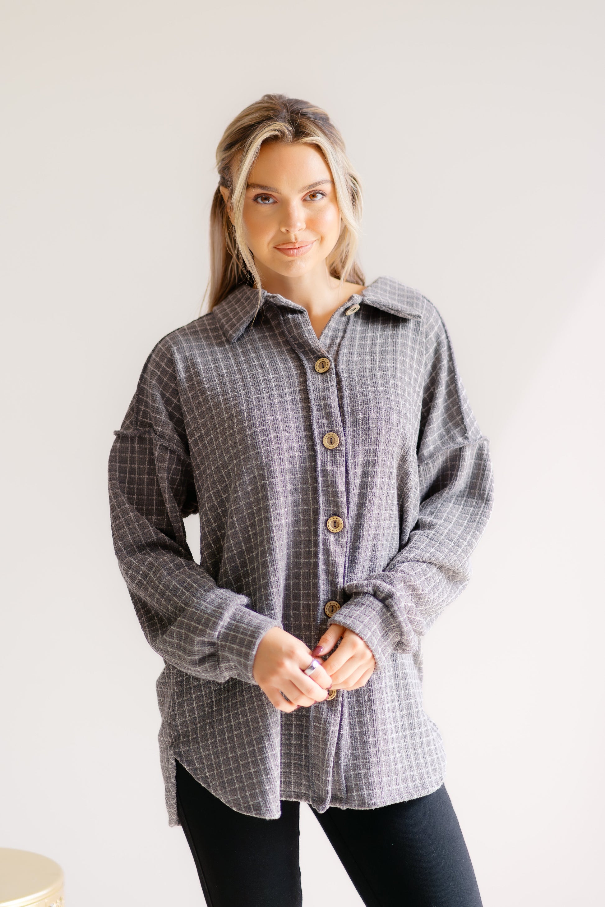 Elevate your wardrobe with the Wandering Whim Top, by Heimish, designed for effortless style and comfort. Its button-up front adds a classic touch, making it perfect for both casual outings and polished looks. Crafted to complement your everyday adventures, this top brings versatility and charm to any outfit.