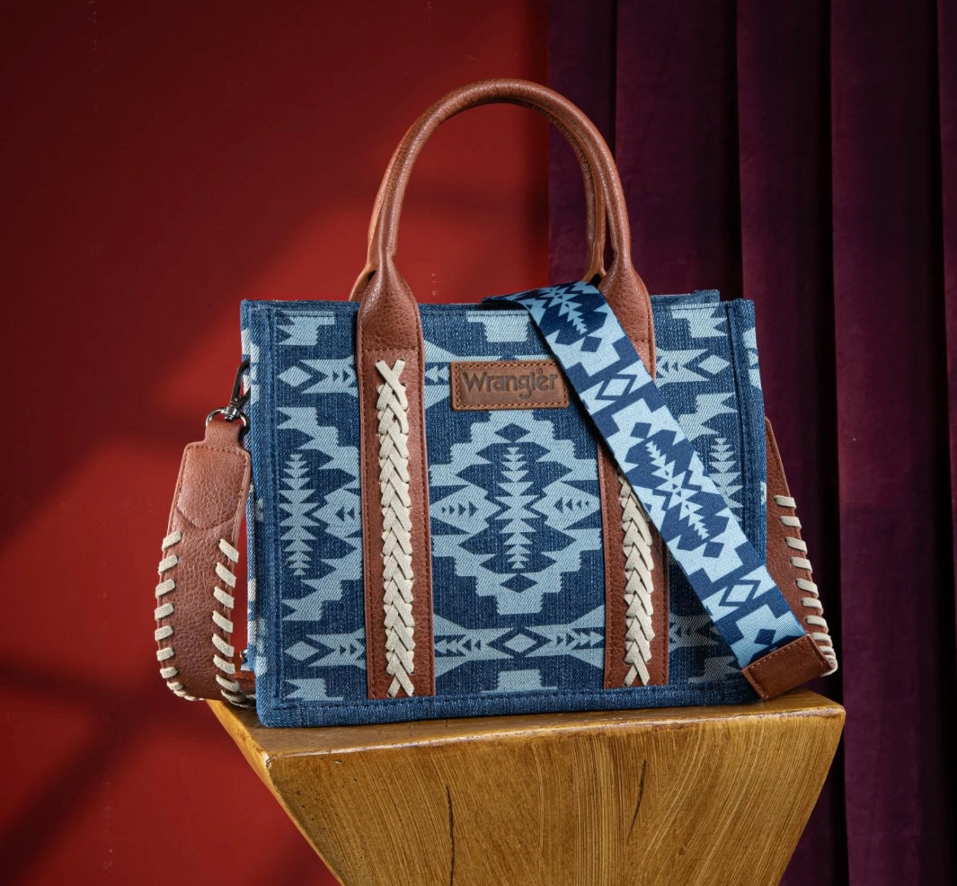 Wrangler Southwestern Print Small Canvas Tote/Crossbody-Jean
